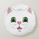 Almofada Redonda Rosto engraçado de gato giro, branco, em travessei