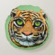 Almofada Redonda Rosto Tiger Selvagem no Travesseiro Redondo Verde