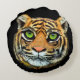 Almofada Redonda Rosto Tigre Selvagem no Travesseiro Redondo Preto