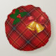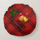 A cozy pillow with a plaid pattern and Christmas decorations for happy holidays