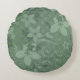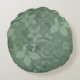 Um design espiral abstrato floral em tons de verde estão em cada lado deste travesseiro elegante. As imagens das flores têm um padrão sutil de bolinhas verde gradiente imposto a elas, o que dá interesse e pedaços de cor mais clara. Bonito!