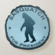 Uma silhueta escura de Sasquatch (Pé Grande) sobre um fundo azul médio, juntamente com o texto em bloco que se lê "SASQUATCH FOR PRESIDENTE". Adicione o seu próprio texto adicional no verso. Não está muito entusiasmado com a escolha dos candidatos ao Presidente desta vez? Procurando um forasteiro de Washington? Aqui está o seu candidato. Na verdade, Bigfoot passa quase todo o seu tempo fora em Washington, Idaho, Oregon, vários outros estados; e partes do Canadá. Grande o suficiente para encher qualquer calçado, mas não precisa se preocupar que ele vai arcar com o Congresso para impor uma agenda radical, de esquerda ou de direita, como ele é tão raramente visto. Votem em uma América mais selvagem. Votem Sasquatch! Trazido a você pelo Comitê de Ação Política de Criptozoologia (CPAC); Bonners Ferry, ID