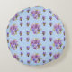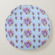 Almofada Redonda Shabby Pansy Floral Blue Gingham Flowers Retro
