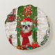 Shih Tzu Dog Natal sentado do lado de fora de casa decorada com coroa de Natal, árvore de Natal é uma ideia perfeita de presente de Natal para amantes de cachorros.