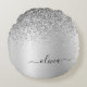 Folha de prata brilha com brilho escovado monograma de metal Nome Travesseiro Pouf. O travesseiro faz o doce e perfeito presente de 16 anos, casamento, chá de panela, chá de fraldas ou festa de solteira para alguém que decora seu quarto em ouro rosa.