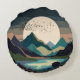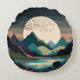 Uma paisagem abstrato de uma enorme superlua em uma cena de lago montanhês com um bando de pássaros em texturas ousadas e tons escuros de marrom, bege, bronzeado, azul, ciano e preto.