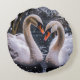 Almofada Redonda Swans Românticos em uma Terra Maravilha de inverno