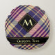 Design púrpura, ouro amarelo e tartã azul. Um padrão perfeito. Texto personalizado e monograma.
