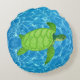Almofada Redonda Tartaruga do Mar Verde sobre o fundo da água turqu