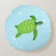 Almofada Redonda Tartaruga marinha sobre fundo azul claro