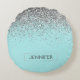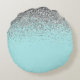 Almofada Redonda Teal Aqua Blue Silver Glitter Girly Monographic No