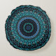 Teal e Black Mandala projetados em travesseiro redondo. Por celeste@khoncepts.com #tealandblack