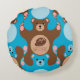 Almofada Redonda Teddy Bears Blue Monograma Kid Round Travesseiro