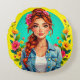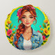 Almofada Redonda Teen Girl Aestic - Retrato de Cartoon Floral