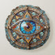 Almofada Redonda Terceiro Olho - Turquesa Blue Dourado Mandala