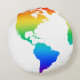 Este travesseiro tem uma imagem gráfica do planeta Terra com o continente da América do Norte, América do Sul, África e Europa a mostrar. Eles estão sentados em cores arco-íris começando com vermelho no verde norte ao longo do meio e azul e roxo no sul. É uma adição impressionante a qualquer decoração, onde você quer fazer uma declaração. O fundo geral é branco.