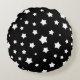 Almofada Redonda Teste padrão de estrelas preto e branco