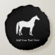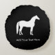 Almofada Redonda Texto customizável elegante do cavalo branco