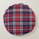 Almofada Redonda Textura assimétrica de Xadrez Marinho Vermelho