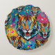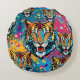 Almofada Redonda Tiger Head Rainbow colors paint stains
