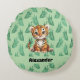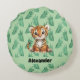 Almofada Redonda Tigre de desenho animado em folhas tropicais