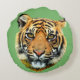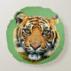 Almofada Redonda Tigre Selvagem de Rosto em Verde