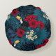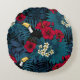 Almofada Redonda Toucans e flora tropical, verdes e vermelhas