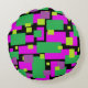 Você precisa de um novo travesseiro no estilo da bolsa para seu sofá ou cama? Este travesseiro decorativo redondo apresenta um abstrato legal, padrão geométrico em tons de verde, roxo e preto. Trabalho de arte por Roupa e Cobrança do ButterCup.