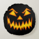 Travesseiro decorativo redondo mostrado a preto com um rosto assustador de Halloween. Personalize este item ou comprar como está.