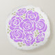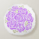 Posse gráfica elegante de rosas roxas brilhantes estilizadas em travesseiro redondo. Ideal para adicionar um toque de verde floral roxo, branco e um toque de cinza de sábio verde à sua casa.