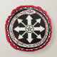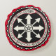 Travesseiro decorativo redondo com símbolos VooDoo, em vermelho e preto. Muito único!