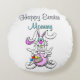 Mamães felzs pascoa Com Um Coelho Chateado, Apresentando Uma Cesta De Ovos E Carroçaria De Páscoa. almofada redonda