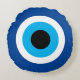 Travesseiro decorativo redondo Mau. Símbolo grego/turco azul para proteção e boa sorte. Almofada de impressão duplo.