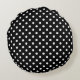 Travesseiro decorativo redondo preto e branco do teste padrão de bolinhas. Decoração bonito da casa do impressão para o quarto ou o sofá. Cor customizável do fundo.