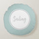 Este travesseiro decorativo redondo náutico, com o texto 'Navegando' sobre um fundo de menta macia, segue perfeitamente com o cobrir do duvet Mint Green Sailboat e Clouds, e seria maravilhoso num quarto com decoração costeira fresca. Você pode personalizar o texto, então vá em frente e mude-o para o que quiser!