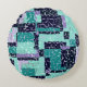 Você precisa de um novo travesseiro no estilo da bolsa para seu sofá ou cama? Este travesseiro decorativo redondo apresenta um padrão legal, estalado, geométrico em vários tons de verde e roxo, com cinza e branco. Trabalho de arte por Roupa e Cobrança do ButterCup.