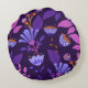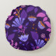 Adicione elegância e cor à sua casa com este travesseiro redondo com um padrão floral moderno brilhante e encantador. Várias formas de roxo, de roxo lilás a roxo profundo, e melhorá-lo com laranja e rosa. Ideal para combinar espaços interiores com a beleza das plantas naturais.