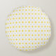 Travesseiro redondo decorativo com padrão amarelo e cinza.
