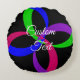 Divertido, colorido, confortável, círculo com temas geométricos, travesseiro redondo. Personalize este item de acordo com o seu gosto, usando edição de texto personalizada. Destaque este produto com o sotaque e os travesseiros decorativos da série design.