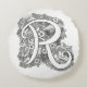 Letra monográfica R travesseiro desenhado à mão rabiscada. Ideal para colorir, bordar ou apenas guardar como esboço a letra R design. A cor do plano de fundo pode ser alterada se for necessário que esteja branca. © Desenho original com tinta, itens começando com R rosas, arco-íris, coelhos, foguetes e framboesas, letras e design por Sarah Trett. www.sarahtrett.com para www.mylittleeden.com