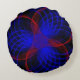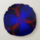 Divertido travesseiro geométrico 3D azul redondo com sotaques triplos vermelhos. Os lados frontal e traseiro têm o mesmo design.