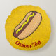 Ilustração de desenho animado de cachorro-quente. Imagem do contorno da comida de lixo ícones de fundo amarelo. Texto personalizado de ambos os lados.