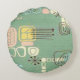 Jeepers! Se você é um fã do estilo moderno do meio século, você irá positivamente macaco para este travesseiro redondo moderno do design gráfico do meio século. As características de design uma réplica de um tecido do vintage com gráficos legal. O fundo é verde de jade com design kitschy no ecru, no marrom, no amarelo, no azul e no rosa. Esta é a maneira perfeita de adicionar algum dom do meio século a sua decoração home.