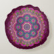 Travesseiro decorativo elegante de sotaque redondo feito em ameixa, com mandala colorida, no meio.