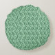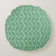 Travesseiro decorativo redondo com videiras verdes escuras e irregulares sobre um fundo verde mais claro.
