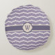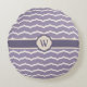 Desfrute de um padrão zigue divertido com um florescimento bonito à medida que o zigue bege se curva para cima e para baixo para pontos em uma forma inspirada pelas pétalas de lótus. Este zigue-zague florescente está sobre um agradável fundo lilático para um contraste caloroso. Personalize este travesseiro com a sua inicial para torná-lo exclusivamente seu.