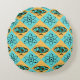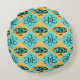 Este design Retro Harlequin Globe Trotter Round Travesseiro apresenta um padrão repetitivo de um globo abstrato oval com continentes de grãos de madeira e símbolos atômicos. Os oceanos no globo vintage estão em tons de lacaio e turquesa. O globo encontra-se num suporte triangular de madeira e o mundo inteiro está num fundo de cor de trigo. Os símbolos atômicos estão sobre um fundo turquesa. Esta design é gatinha, bondade da era espacial no seu melhor!