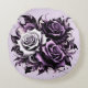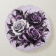 Esta ilustração mostra três belos rosas, um branco e dois roxos, cercados por elegantes decorações pretas e roxas. Tons escuros e detalhes complexos criam uma atmosfera misteriosa e gótica, enquanto partes mais leves adicionam contraste e profundidade extra.
