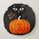 Almofada Redonda Trick ou Tratar Black Laranja Cat Spookie Hallowee