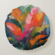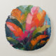 Almofada Redonda Tropical Feathers – Vibrant Botanical Abstraction